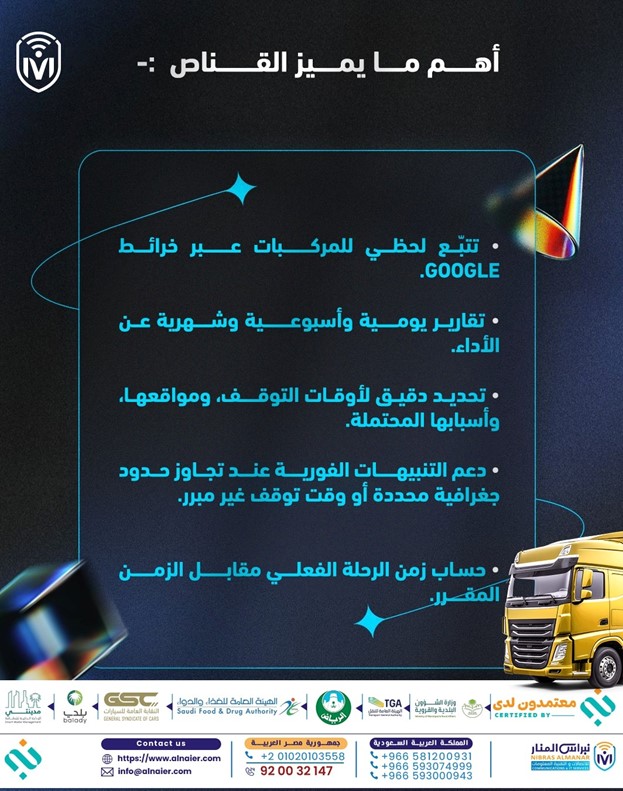 نبراس المنار — القناص حلول تتبع وشحن ذكية للأغذية والدواء باستخدام التتبع اللحظي تاريخ النشر: 1 نوفمبر 2025 احمِ شحناتك الآن باستخدام التتبع اللحظي للأغذية والدواء الاستدامة في نقل الأغذية والدواء: التتبع اللحظي للأغذية والدواء يقلل الفاقد التتبع اللحظي للأغذية والدواء يقلل الفاقد ويحسن الامتثال. تعلم كيفية استخدام التقنيات الحديثة لتقليل الخسائر في قطاع الأغذية والدواء باستخدام أنظمة التتبع اللحظي. لماذا تبدأ الاستدامة بدقّة التتبّع اللحظي في الأغذية والدواء؟ عندما تعرف بالضبط أين توجد شحنتك، وفي أي درجة حرارة تُنقل، ومتى تتوقف المركبة، يمكنك إدارة الموارد بذكاء وتقليل الفاقد قبل أن يحدث. التتبع اللحظي للأغذية والدواء يسمح لك باتخاذ قرارات فورية وتوجيه العمليات بدقّة. الاستدامة الذكية = تشغيل أذكى + ربحية أكبر تجدونها في حلول تتبع الأغذية والدواء باستخدام التتبع اللحظي. تحديات حسّاسة في نقل الأغذية والدواء: كيف يساعد التتبع اللحظي؟ نقل الأغذية والدواء مسؤولية مزدوجة: حماية صحة المستهلك وحماية سمعة الشركة. أي خلل في سلسلة التوريد قد يؤدي إلى تلف الشحنات أو فقدان الفاعلية. لكن مع **التتبع اللحظي للأغذية والدواء**، يمكن تقليل هذه المخاطر بشكل كبير. تقلبات في درجات الحرارة قد تفسد الأغذية الأدوية قد تفقد مفعولها إن لم تُنقل في ظروف دقيقة أي تأخير أو تغيير في المسار قد يُلغي جدوى الشحنة كاملة التقنيات الذكية: ما الذي تغيّر في حلول التتبع اللحظي للأغذية والدواء؟ أنظمة التتبع اللحظي للأغذية والدواء تطورت من مجرد خرائطإلى منظومات متكاملة تشملمستشعرات دقيقة لدرجة الحرارة، الرطوبة، وفتح الأبواب تنبيهات لحظية عند أي تغيير غير معتاد في بيئة النقل تخزين بيانات تاريخي لمسار الشحنة وظروفها لحظة بلحظة لوحات تحكّم تفاعلية لمتابعة الشحنات والتحكم فيها عن بُعد تحليلات ذكية تتوقع المخاطر وتقترح حلولًا فورية في قطاع الأغذية والدواء أين يحدث الفاقد؟ وكيف نوقفه في الأغذية والدواء باستخدام التتبع اللحظي؟ بحسب تقارير سلاسل الإمداد، تصل نسبة الفاقد في الأغذية إلى 30% أثناء النقل، وتُفقد قرابة 10% من الأدوية بسبب التخزين غير المناسب أو الإهمال التشغيلي. ومع استخدام التتبع اللحظي للأغذية والدواء، يمكن التقليل من هذه النسب بشكل كبير. تقلبات في درجات الحرارة تأخير في التسليم وعدم كفاءة المسارات عدم الاستجابة الفورية للتنبيهات.غياب المتابعة الفعلية أثناء النقل وعند تفعيل نظام التتبع اللحظي للأغذية والدواء، يمكن اكتشاف المشاكل فورًا والتدخل السريعمنع تلف المنتج قبل تفاقم المشكلة إصدار تقارير فورية للمراجعة والتحسين الاستدامة كأداة مالية وتشغيلية في قطاع الأغذية والدواء باستخدام التتبع اللحظي الاستدامة ليست رفاهية؛ بل مفتاح لخفض التكاليف وتحسين الكفاءة. عندما تعرف كل ثانية حالة شحنتك باستخدام التتبع اللحظي للأغذية والدواء، يمكنك: تقليل الهدر في المنتجات. خفض تكاليف الوقود والتشغيل عبر تحسين المسارات. منع التكرار في الشحن أو الإرجاع. تحسين رضا العملاء والالتزام التنظيمي. البيانات: كنزك المخفي في نقل الأغذية والدواء باستخدام التتبع اللحظي كل عملية نقل تولّد آلاف نقاط بيانات — من درجة الحرارة إلى سلوك السائق. عبر تحليل هذه البيانات باستخدامالتتبع اللحظي للأغذية والدواءيمكنك من اكتشاف أنماط الهدر وتجنّبها جدولة الصيانة الاستباقية للمركبات تحسين المسارات لتقليل الوقت والتكلفة تقييم أداء السائقين بدقّة التوافق التنظيمي في السعودية لنقل الأغذية والدواء باستخدام التتبع اللحظي تشترط هيئة الغذاء والدواء السعودية تتبّعًا لحظيًا للأغذية والدواء، حفظ سجلات قابلة للمراجعة، واستجابة فورية لأي تجاوز بيئي. الحلول المتقدمة مثل **التتبع اللحظي للأغذية والدواء** تسهّل عمليات التدقيق وتضمن الامتثال. التدريب والتمكين: الركيزة الأساسية في أنظمة تتبع الأغذية والدواء لا قي